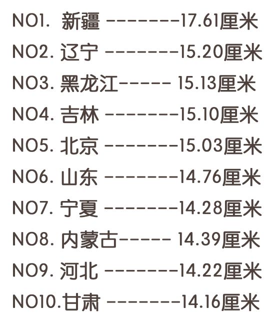 还有个关于中国各省丁丁长度排行榜top10,看看你所在省份有没有上榜(野史数据,仅供娱乐):