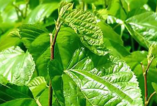 【形态特征】:桑枝为落叶灌木或小乔木,高3-15m。树皮灰白色,有条状浅裂;根皮黄棕色或红黄色,纤维性强。单叶互生;叶柄长l-2.5cm;叶片卵形或宽卵形,长5-20cm,宽4-10cm,先端锐尖或渐尖,基部圆形或近心形,边缘有粗锯齿或圆齿,有时有不规则的分裂,上面无毛,有光泽,下面脉上有短毛,腋间有毛,基出脉3条与细脉交织成网状,背面较明显;托叶披针形,早落。