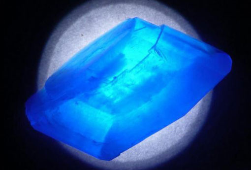 【形态特征】:三斜晶系。晶体作扳状或短柱状,通常为致密块状、钟乳状、被膜状、肾状,有时具纤维状。颜色为天蓝、蓝色,有时微带浅绿。条痕无色或带浅蓝。光泽玻璃状。半透明至透明。断口贝壳状。硬度2.5。比重2.1~2.3。性极脆。常产于铜矿的次生氧化带中。