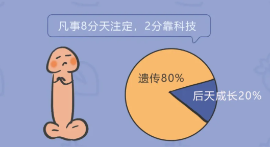 决定男性丁丁尺寸的80%靠遗传,20%靠后天成长。也就是8分天注定,2分靠科技。