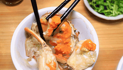 2、蟹肠:里面有蟹的排泄物,掰开蟹身之后,看到蟹黄、蟹肉处有一根根黑色的东西,要取掉。