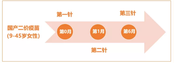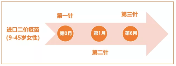 进口二价疫苗:第2剂可在第1剂之后的1-2.5个月之间接种,第3剂可在第1剂后的5-12月之间接种。