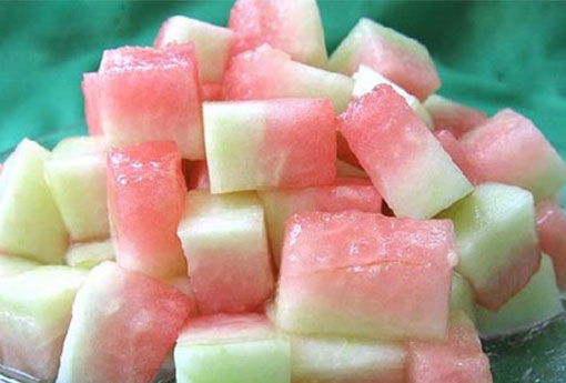 1、处理西瓜皮。要现将里边削净,再将外皮青皮部分削去,只留皮肉部分,每块以随意的形状,但不可太大。