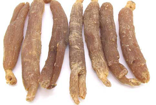 红参是参的熟用品,其加工方法是经过浸润、清洗、分选、蒸制、晾晒、烘干等工序加工而成。红参在蒸制过程中,因为热处理会发生化学反应,成份上发生变化。会生成水参及白参不俱有的新的成份,即红参特有的生理活性物质G-Rh2,Panaxytriol,maltol等。G-Rh2、Panaxytriol有抑制癌细胞增长的作用,maltol俱有抗氧化作用。干燥后的红参颜色红润,气味浓香。红参较白参相比组织致密、坚固、储藏性良好。 红参俱有补气、滋阴、益血、生津、强心、健胃、镇静等作用。这些作用红参与白参没有严格的区别,但在补虚方面一般认为红参强于白参。久服红参可以提高人体免疫力、抗疲劳、抗辐射、抑制肿瘤、调整人体内分泌系统。红参适合于老人、久病体虚者,红参具有火大、劲足、功效强之特点,是阴盛阳虚者的首选补品,医药上治疗虚脱或强补多用红参。