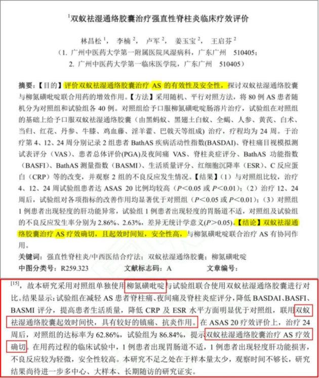 图为治疗强直性脊柱炎临床研究报告。