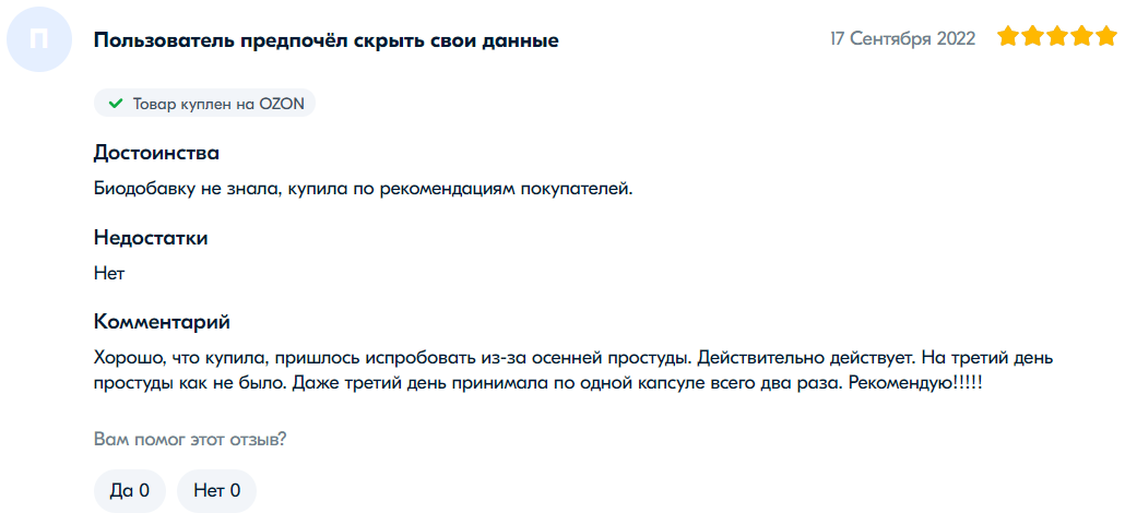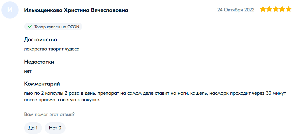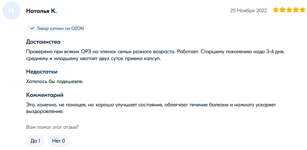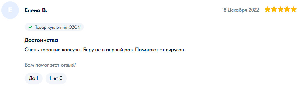 网友“叶莲娜·V”表示:“很好的胶囊。不是第一次购买了。帮助抵抗病毒。”