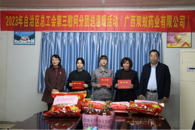 自治区总工会副主席、党组成员钟天录率自治区总工会第三慰问分团到双蚁药业开展送温暖活动