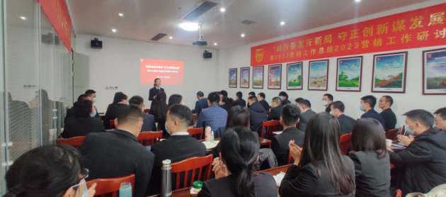 副总经理梁立艳对2022年的经营情况进行详细分析,并就2023年营销工作重点及要求进行阐述和指导。