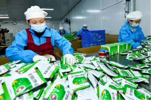 外包车间里,员工们正在进行药品外包装工作。