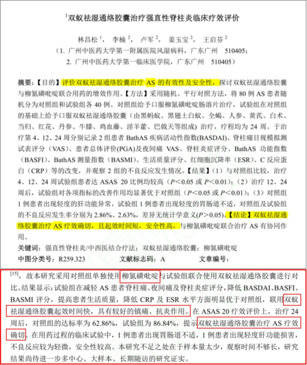 治疗强直性脊柱炎临床疗效评价