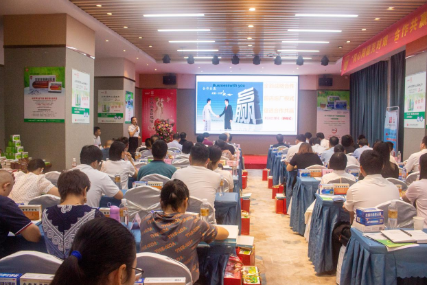 最后,邀请合作伙伴上台分享合作的感想和心得。玉林市至真药业总经理刘龙富在分享时说到,与双蚁药业合作的初衷是基于对王波董事长的认可,因为相信王董的人品,所以选择,结果也证实了产品如人品。同时也因为双蚁药业的产品质量好,回头客很多,一直合作到现在,希望继续保持合作。