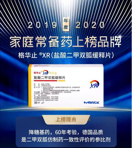 2020年,原研二甲双胍缓释片荣登了由家庭医生在线、《医药经济报》等机构共同举办的“2019-2020年度家庭常备药上榜品牌”[6],获得了糖友们的一致好评。