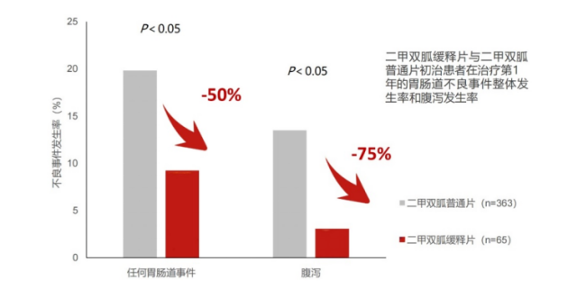 相对于普通片而言,缓释片一天一次具有更好的胃肠道耐受性,可提高患者的用药依从性[8]。