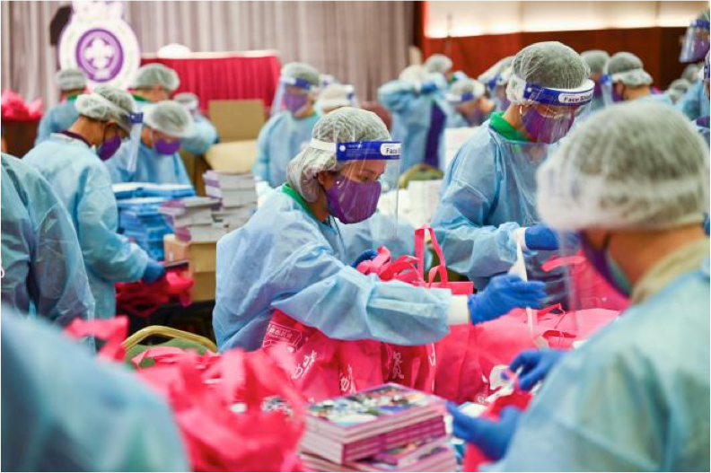香港童军总会义工包装抗疫包。(图片来源:青少年抗疫连线)
