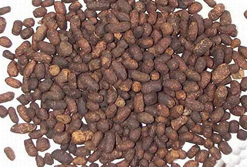 灵脂米:呈长椭圆形颗粒状,两端钝圆,长0.5~1.5厘米,直径3~6毫米。表面褐色,绿褐色或棕褐色,粗糙显麻点。体较轻松,易掰裂,断面灰黄色或黄绿色,纤维性。气微臭,味苦咸。习惯认为灵脂块品质较好,灵脂米较差。灵脂块以块状,黑褐色,饴糖样,有光泽,无杂质者为佳。灵脂米以颗粒完整,表面绿褐色,无杂质者为佳。