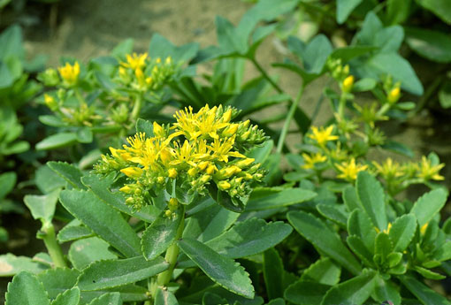 【来源】景天科景天属植物景天三七Sedum aizoon L.或横根费菜S. kamtschaticum Fisch.,以根或全草入药。春秋采挖根部,洗净晒干。全草随用随采,或秋季采集晒干。