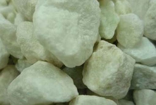 【性状】 本品为粒状和致密块状的集合体。呈不规则的块状。具棱角,而不锋利。白色或浅灰白色,其中夹有点状或条状的蛇纹石,呈浅绿色或淡黄色,习称“彩晕”,对光观察有闪星状光泽。体重,质硬,不易破碎。无臭,味淡。