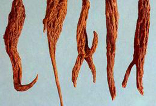【性状】性状鉴别:块根长圆锥形或长纺锤形,稍弯曲,长3-12cm,直径0.6-1.2cm。表面棕红色或灰棕色,有扭曲的纵皱纹;顶端可见茎痕。质坚实,易折断,断面皮部红褐色,木部棕黄色。气微,味微辛。 以个大、质坚实、色红褐者为佳。