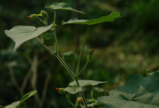 【形态特征】:1.野葵二年生草本,高60-90cm。茎被星状长柔毛。叶互生;叶柄长2-8cm,仅上面槽内被绒毛;托叶卵状披针形,被星状柔毛;叶片肾形至圆形,直径5-11cm,常为掌状5-7裂,裂片短,三角形,具钝尖头,边缘有钝齿,两面被极疏糙状毛或几无毛。花3至数朵簇生于叶腋间,几无柄至有极短柄;总苞的小苞片3枚,线状披针形,被纤毛;萼杯状,5裂,广三角形,被疏星状长硬毛;花冠淡白色至淡红色,花瓣5,长6-9mm,先端凹入,具爪;雄蕊柱长4mm,被毛;花柱分枝10-11。果扁圆形,直径5-7mm,分果爿10-11,背面平滑,两侧具网纹。种子肾形,直径约1.5mm,紫褐色,秃净。花期3-11月。
